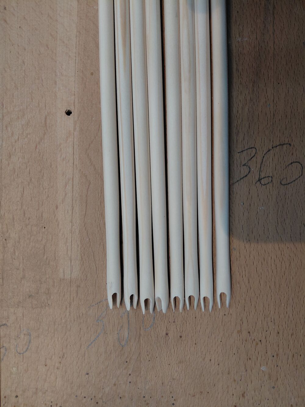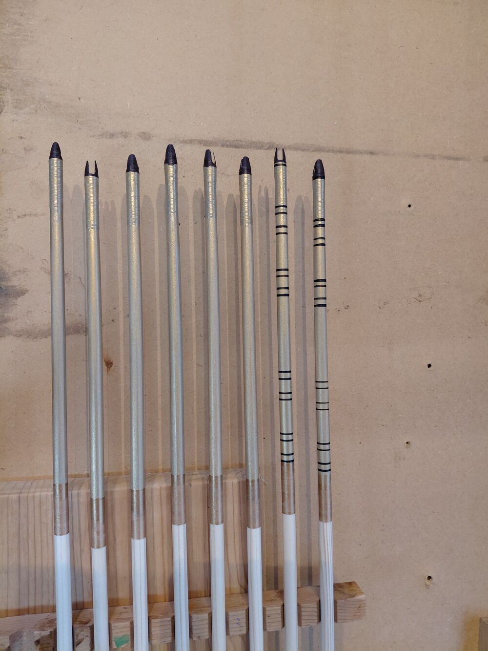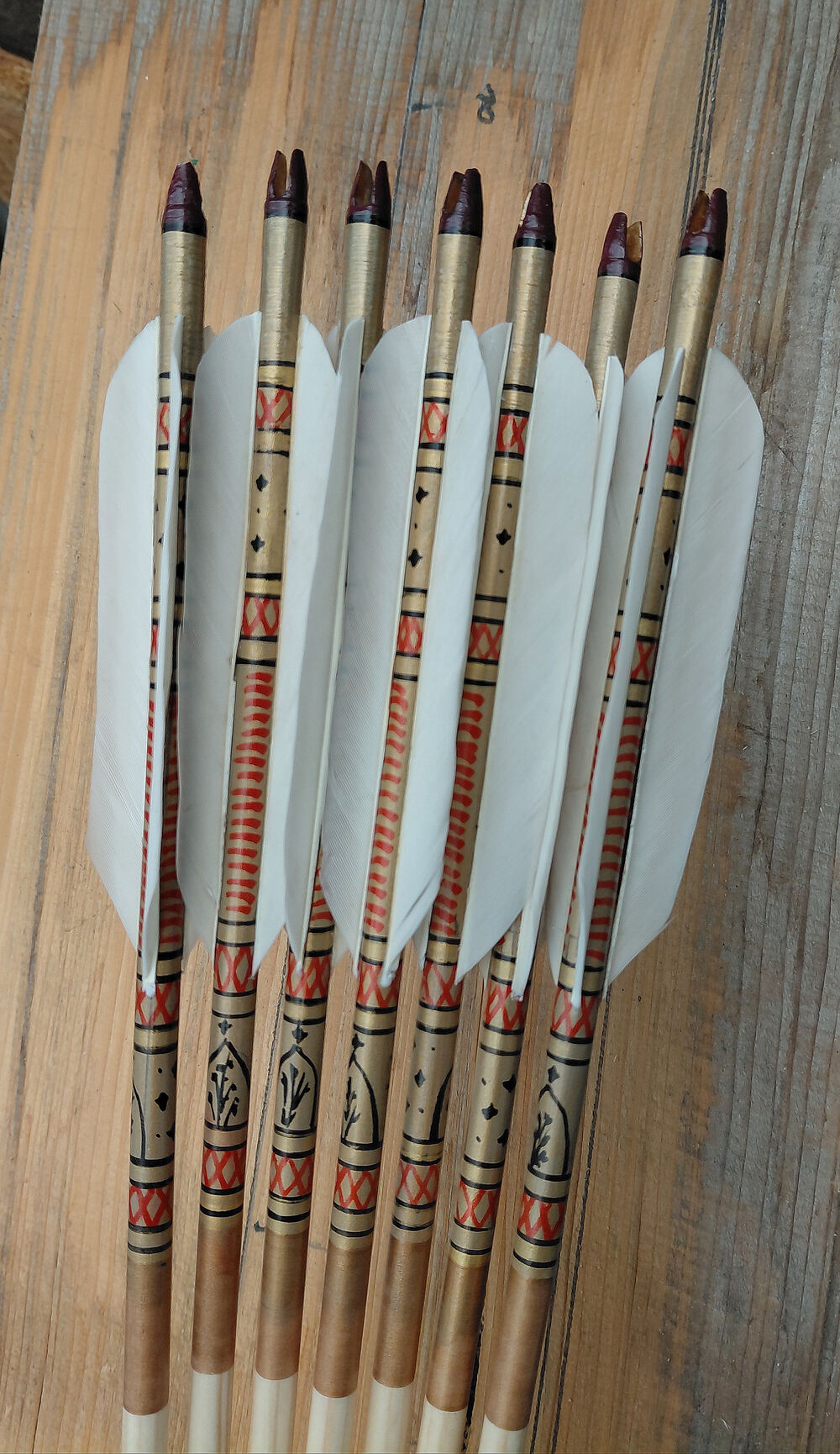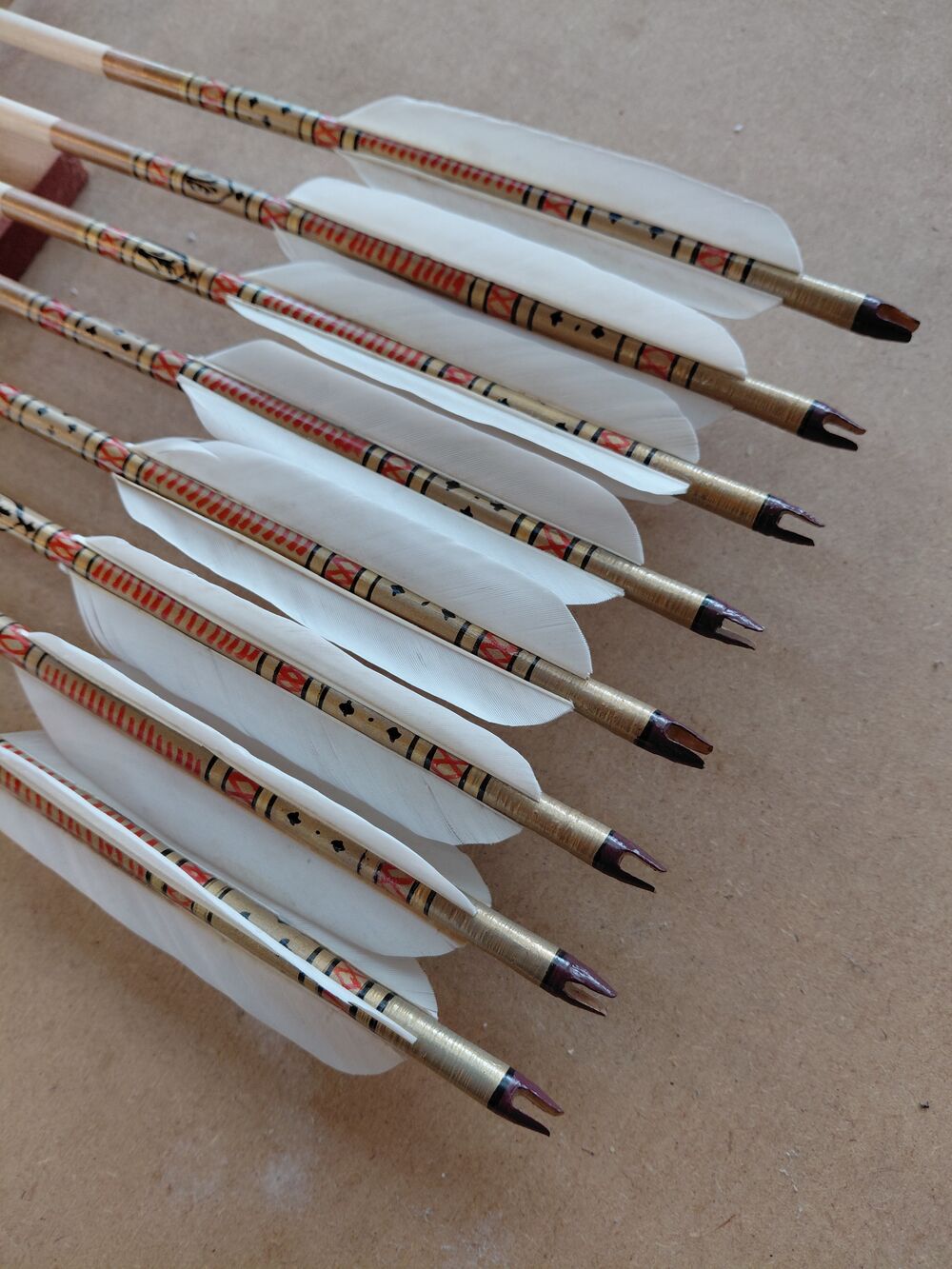 Lotki: 4,5" lotki gęsie, naturalnie wysokie, przycięte w tylnej części i przesunięte lekko ku przodowi zamiast klejenia bezpośrednio przy osadzie strzały - możliwość strzelania palcami nie tylko za pomocą zekiera.